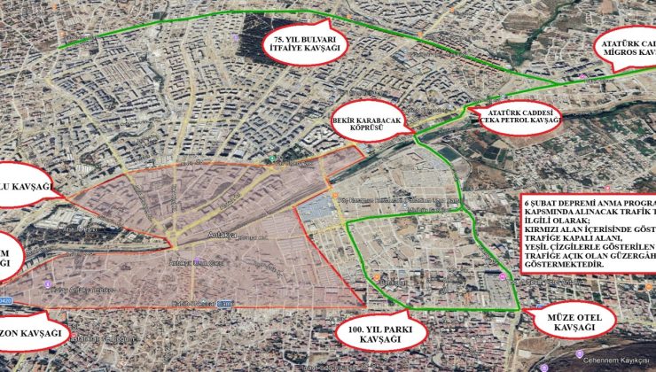 Asırların Felaketi olarak nitelendirilen 6 Şubat ve devamındaki depremlerin 3. yıl dönümü dolayısıyla düzenlenecek anma programları kapsamında, 05–06 Şubat 2026 tarihlerinde kent genelinde bazı trafik tedbirleri alınacak.