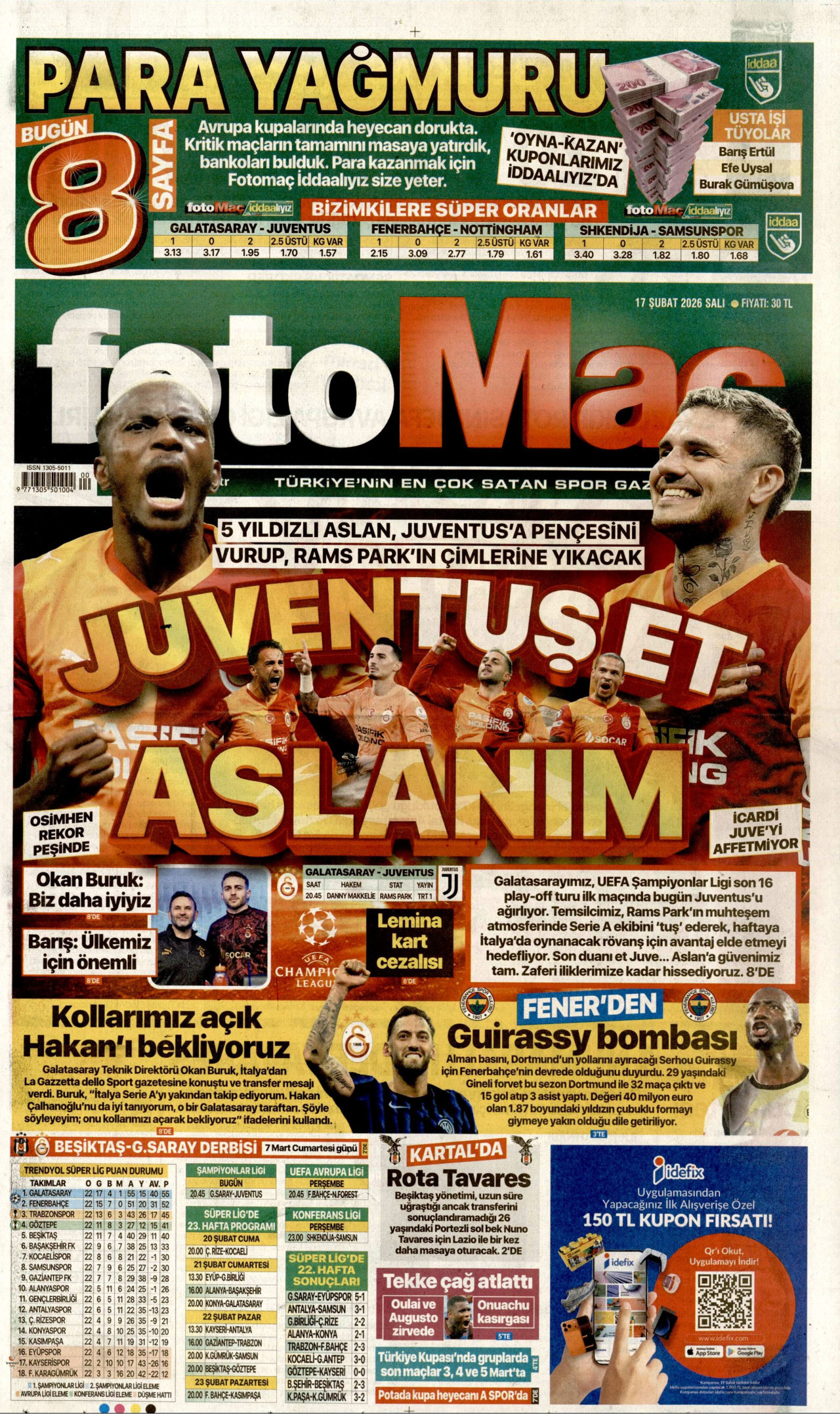 FOTOMAÇ Gazetesi 17 Şubat 2026, Salı Günü Manşeti