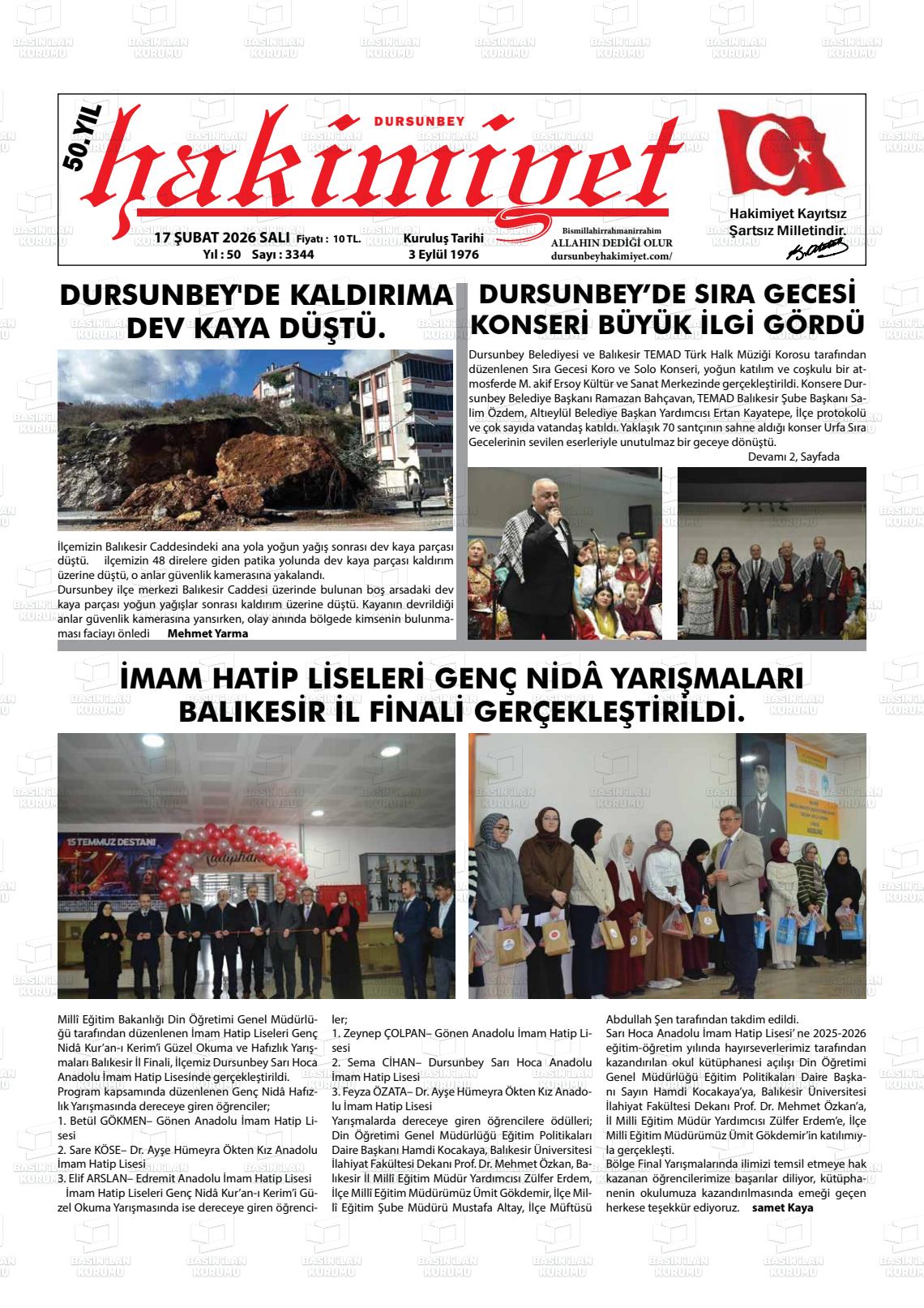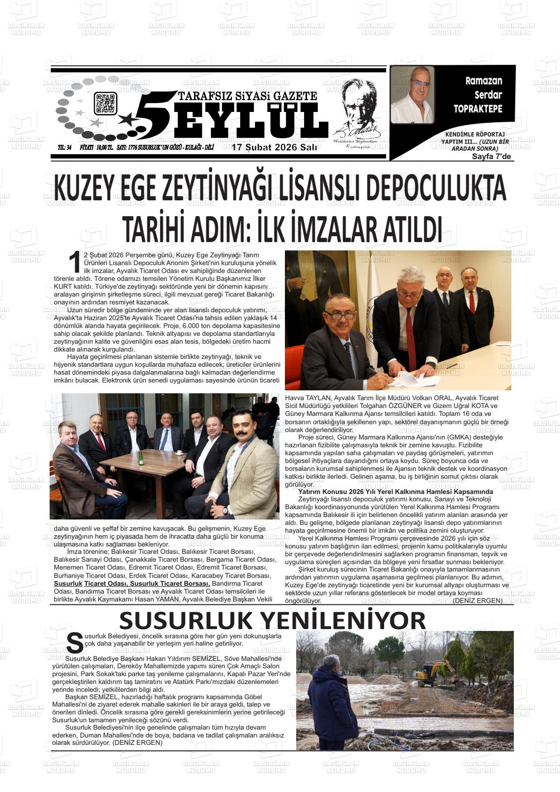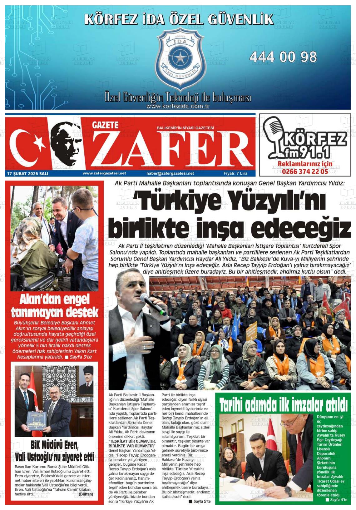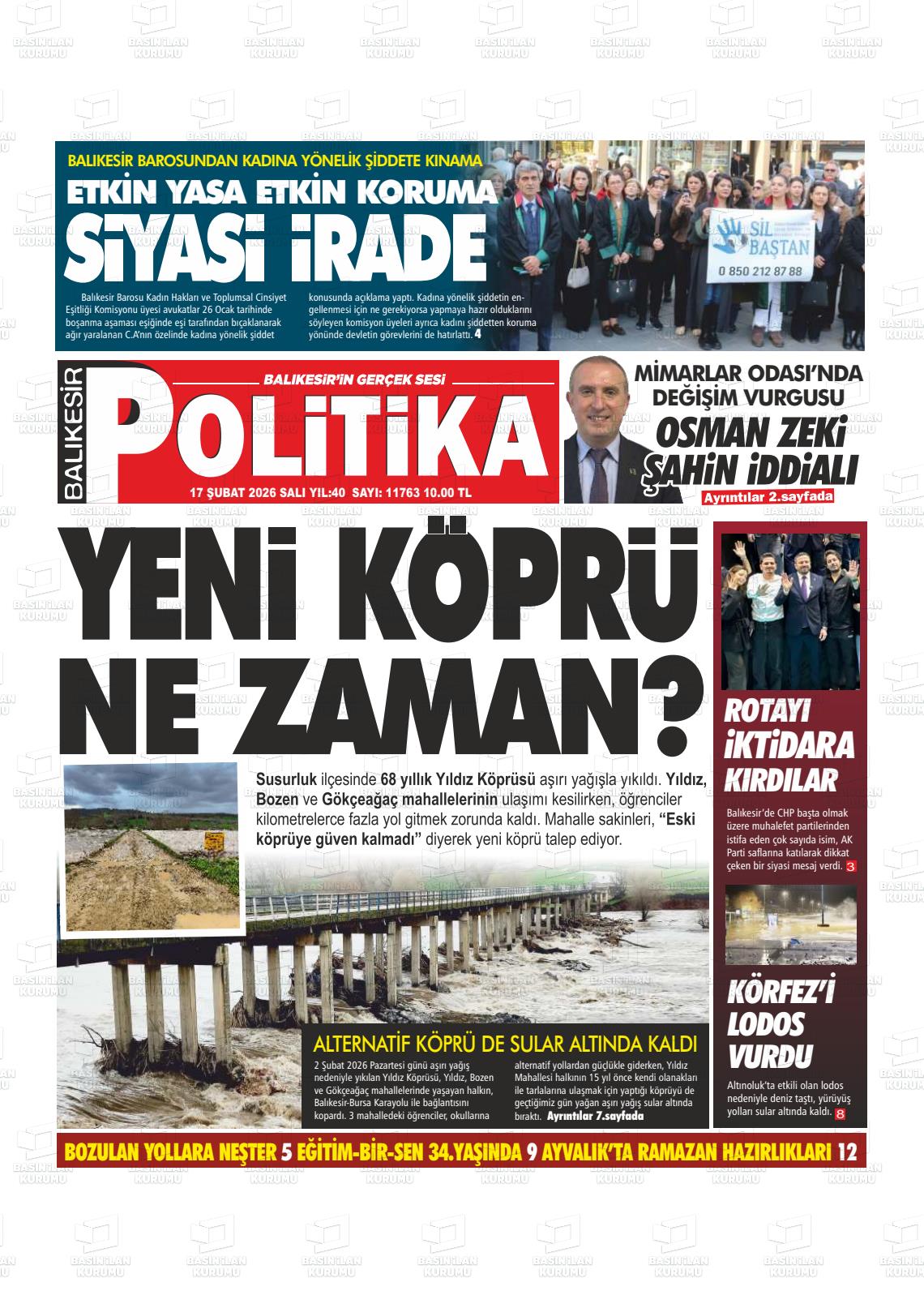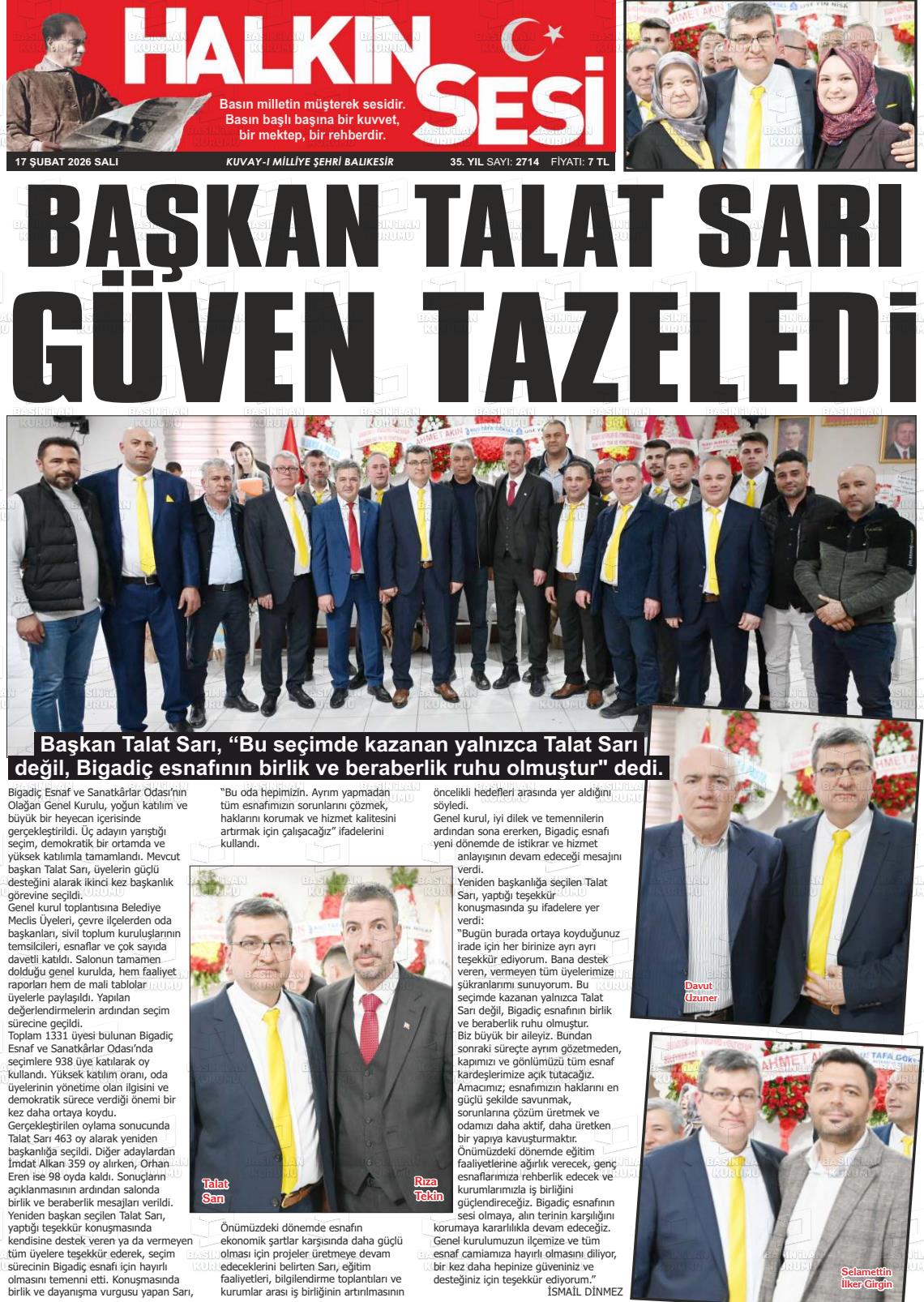 Balıkesİr Yerel Gazeteleri 17 Şubat 2026, Salı Günü Manşeti