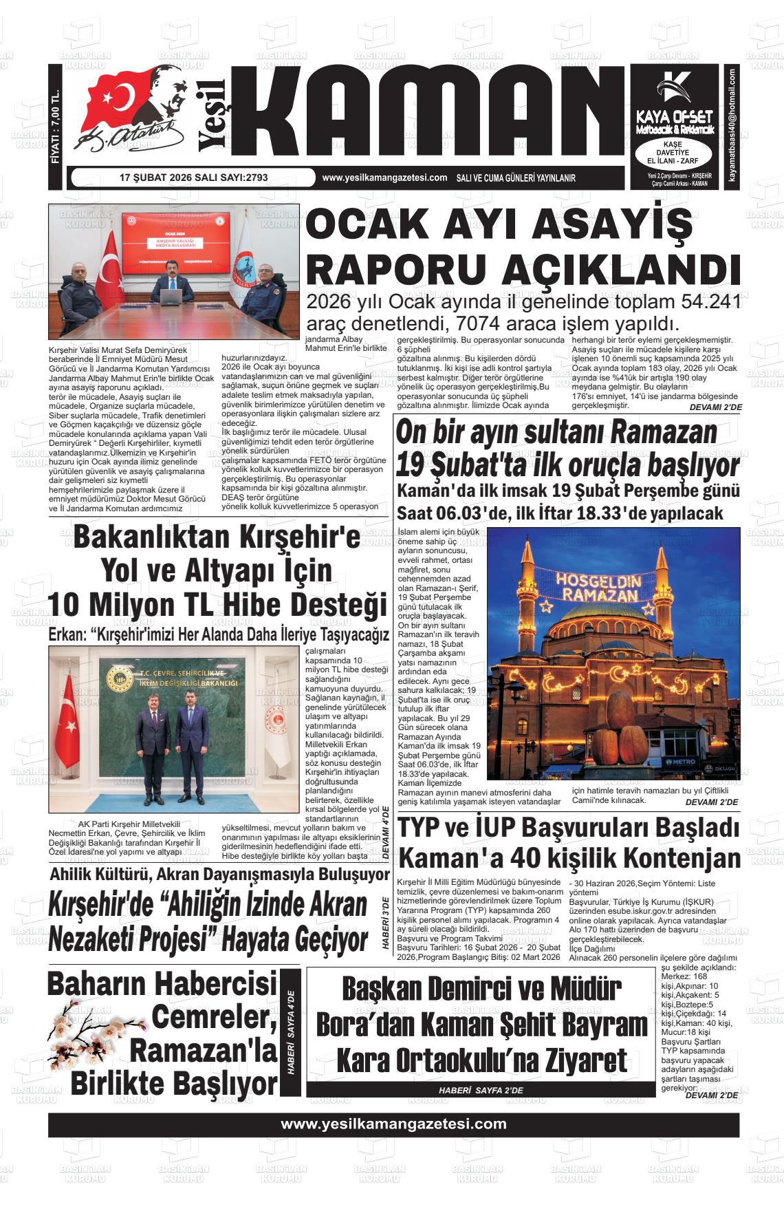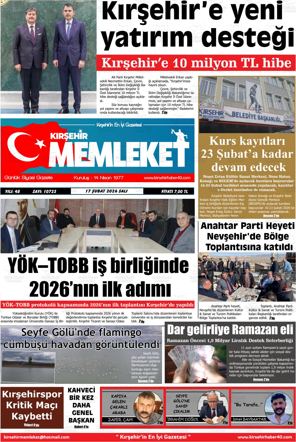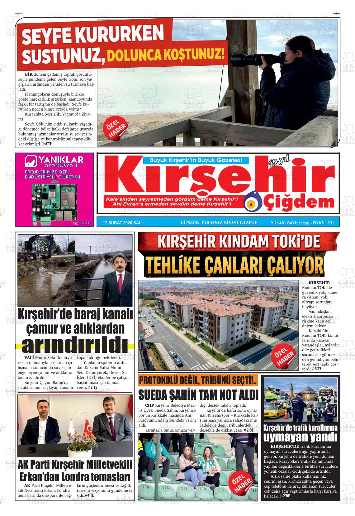 Kırşehİr Yerel Gazeteleri 17 Şubat 2026, Salı Günü Manşeti
