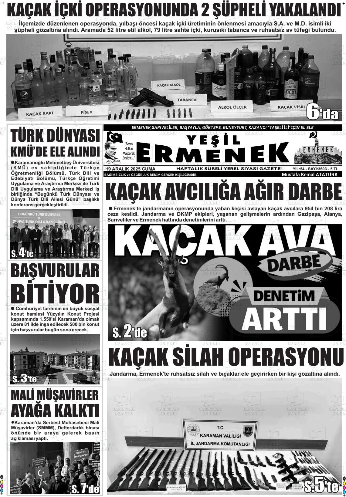 Karaman Yerel Gazeteleri 19 Aralık 2025, Cuma Günü Manşeti