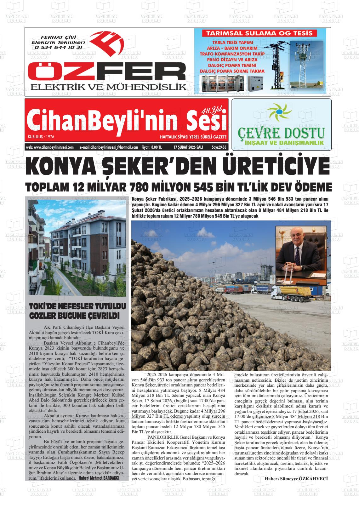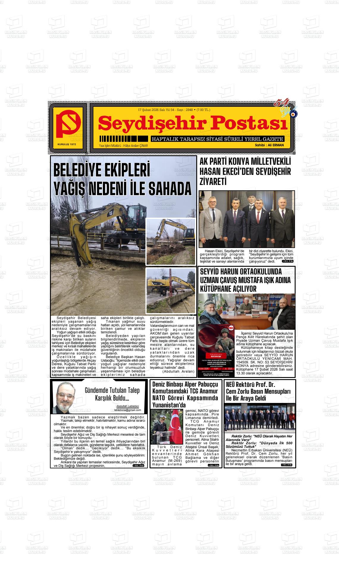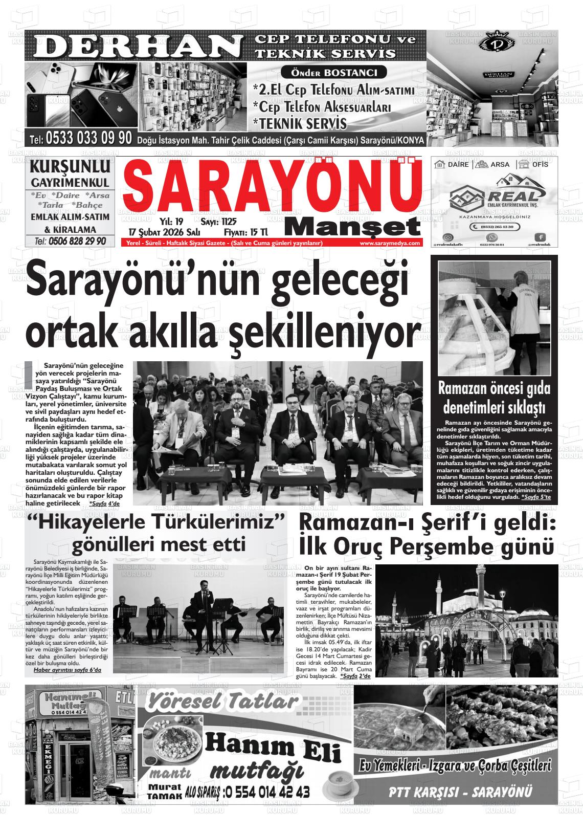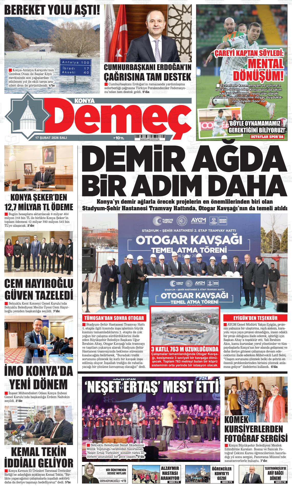 Konya Yerel Gazeteleri 17 Şubat 2026, Salı Günü Manşeti